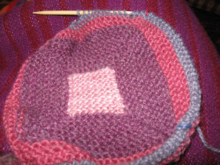 One round on a blanket square, just so I could say I did, because I have fallen prey to the unwelcome thought, "Just why do I, do we, do all this knitting, spinning, weaving anyway? What on earth is the point of this?"